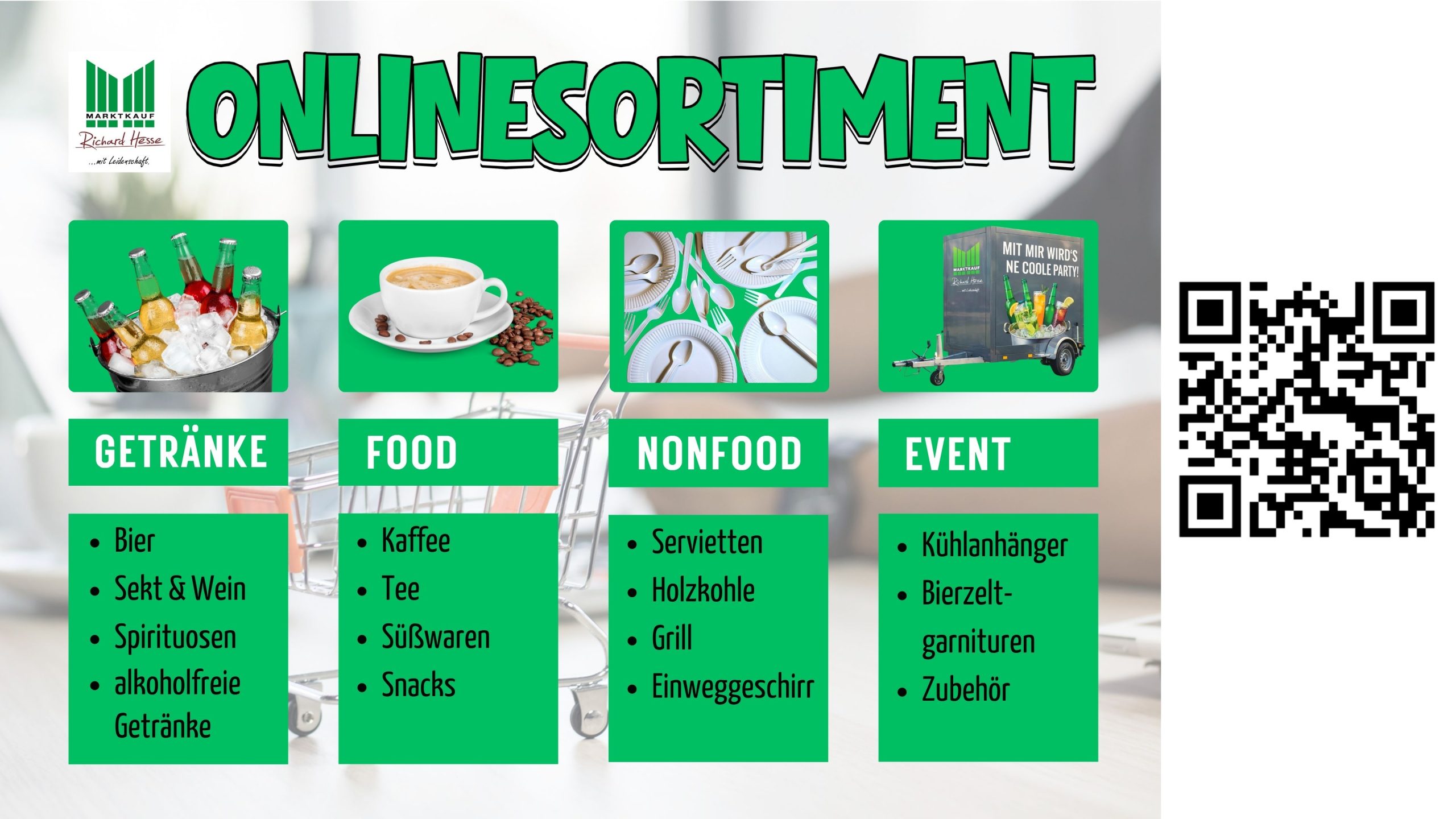 Marktkauf Hesse, ein modernes SB-Warenhaus in modernem Ambiente. Stöbern Sie nach Lust und Laune in unseren attraktiven Abteilungen. Neben Lebensmitteln liegt ein weiterer Sortimentsschwerpunkt auf Non-Food-Artikeln, wie zum Beispiel Multimedia-, Haushalts- und Drogeriewaren.